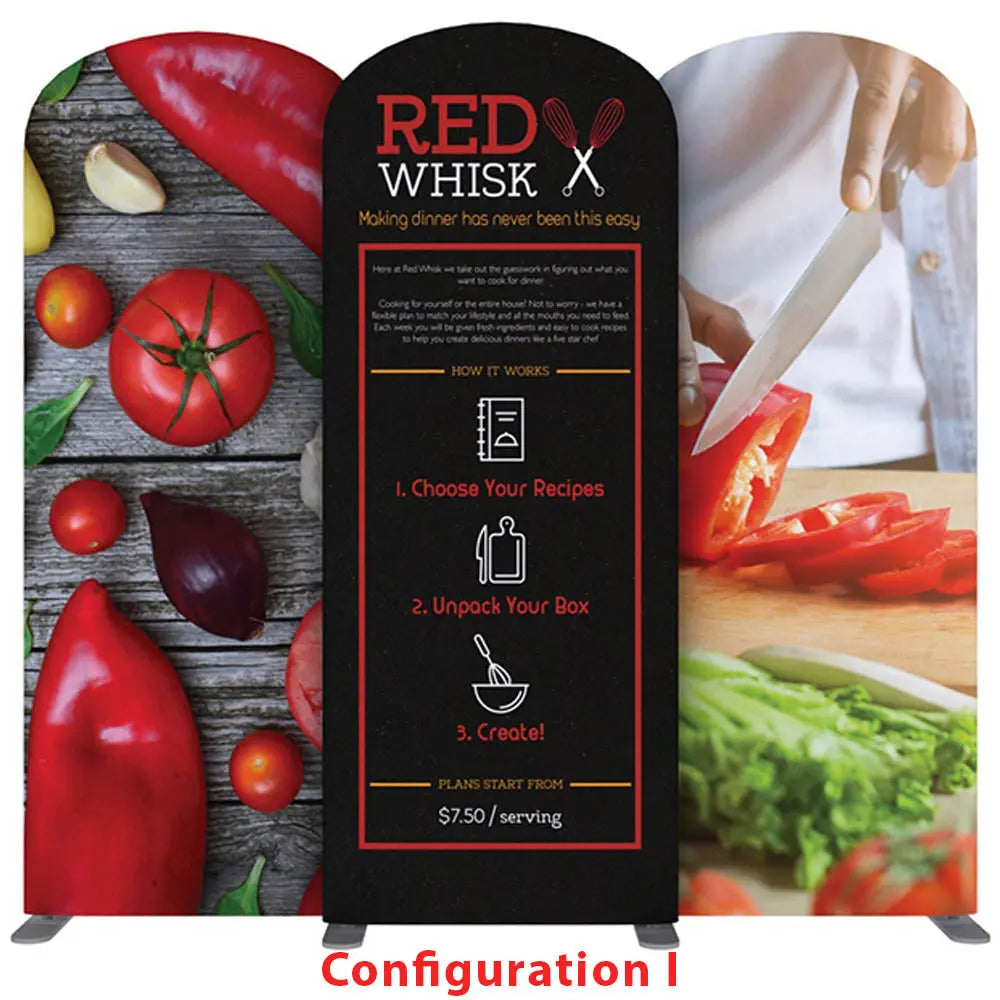 Modular has officially met tube frames! Multitubes modular tube display system lets you configure multiple shapes, sizes and frames. Multitubes lets you choose from straight, round or slant top shapes, 90" or 96" frame heights, and 2ft, 3ft, 4ft, 5ft, 8ft and 10ft frame widths. Each Multitube frame easily connects, using aluminum tubing with push button snaps to lock and to attach to feet. Feet have two mounting points to connect frames side-by-side -This is a customization and not included if you buy these displays individually* Customize single- or double-sided stretch fabric graphics that pulls over frames and zips closed underneath.