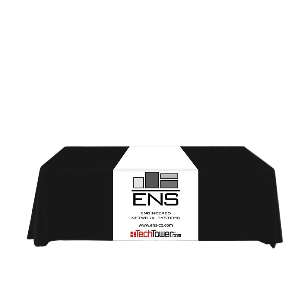 Table runner is an economic way to advertise your company logo and marketing messages. Transferable and fits any table. Printed on your choice of PETG material which gives a gloss finish, Non-Crease Vinyl to give a more matte look, or a Dye Sub Cloth material. Your message can be printed on one side or both. The table runner is weighed on each end to provide a perfect look. A carrying case is included.