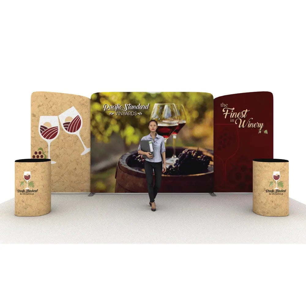 Modular has officially met tube frames! Multitubes modular tube display system lets you configure multiple shapes, sizes and frames. Multitubes lets you choose from straight, round or slant top shapes, 90" or 96" frame heights, and 2ft, 3ft, 4ft, 5ft, 8ft and 10ft frame widths. Each Multitube frame easily connects, using aluminum tubing with push button snaps to lock and to attach to feet. Feet have two mounting points to connect frames side-by-side. Customize single- or double-sided stretch fabric graphics that pulls over frames and zips closed underneath.