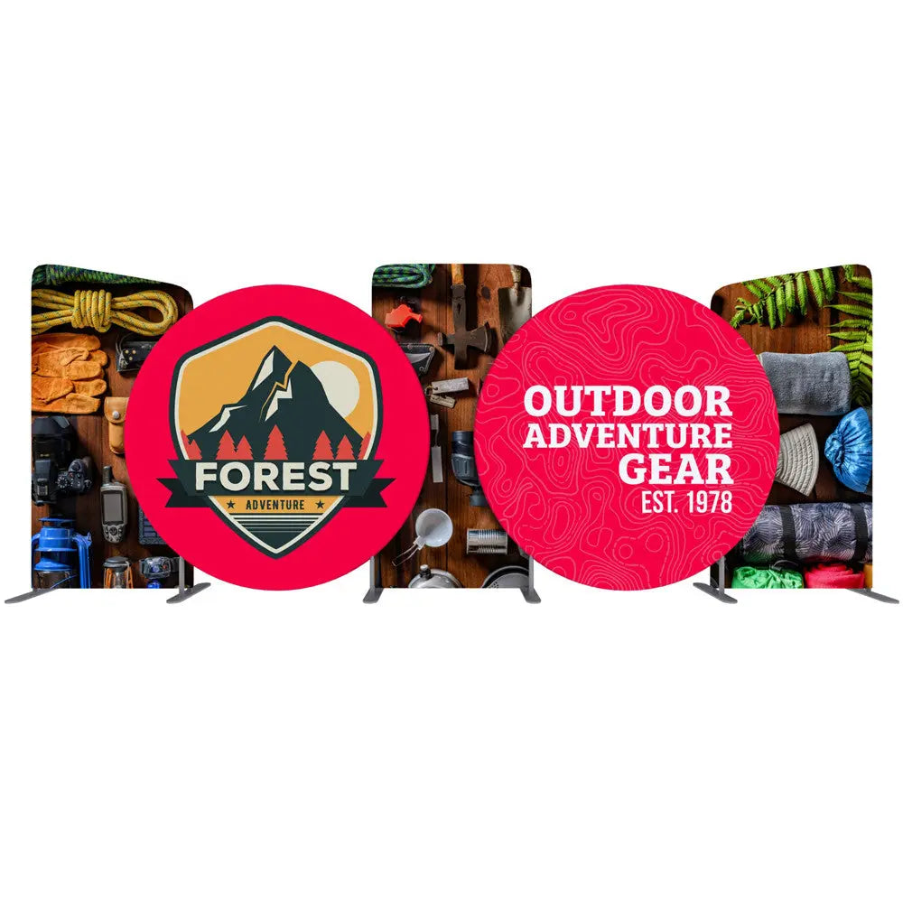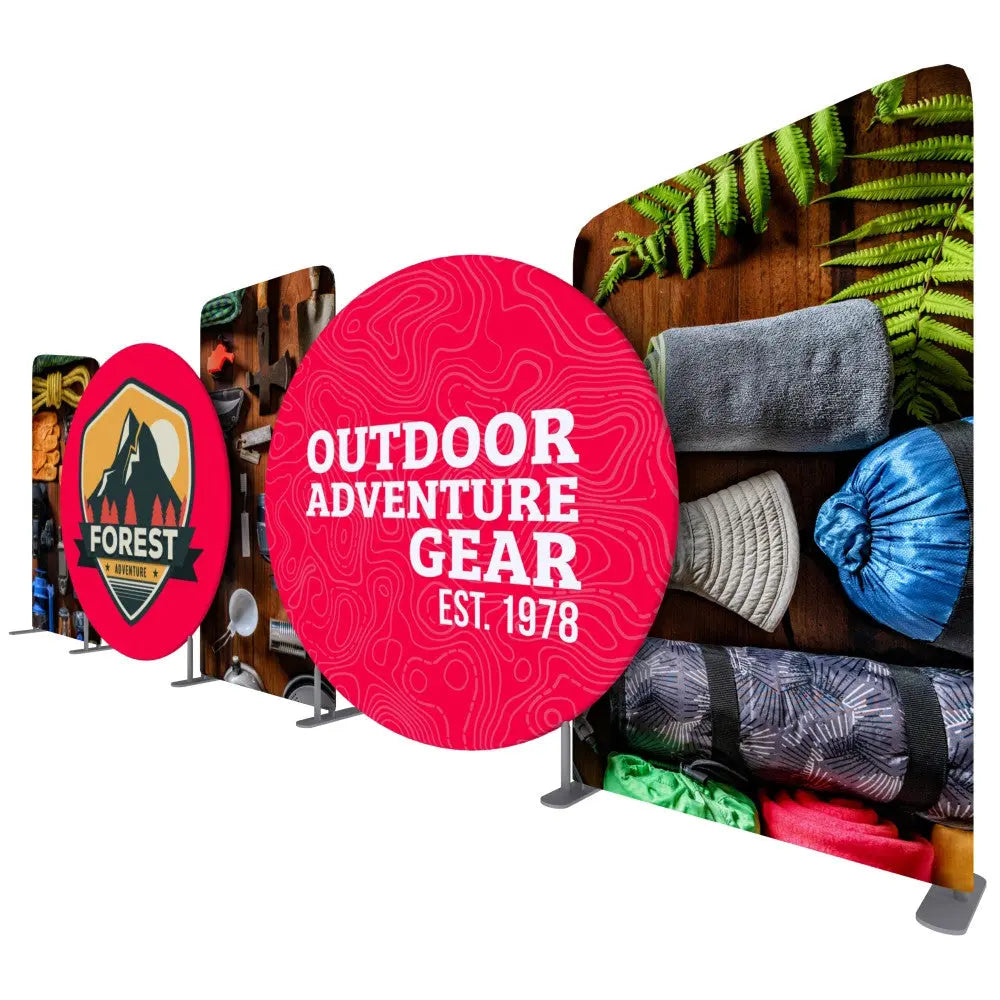 Modular has officially met tube frames! Multitubes modular tube display system lets you configure multiple shapes, sizes and frames. Multitubes lets you choose from straight, round or slant top shapes, 90" or 96" frame heights, and 2ft, 3ft, 4ft, 5ft, 8ft and 10ft frame widths. Each Multitube frame easily connects, using aluminum tubing with push button snaps to lock and to attach to feet. Feet have two mounting points to connect frames side-by-side. Customize single- or double-sided stretch fabric graphics that pulls over frames and zips closed underneath.