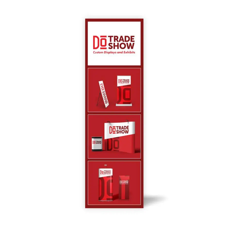 Each panel is 88” tall and is attached by magnets. Panels can easily be switched in seconds presenting an updated look or messaging. Some customers have extra panels for different shows or different seasons. Some aggressive customers even change panels during a single show to present a new look for day two.