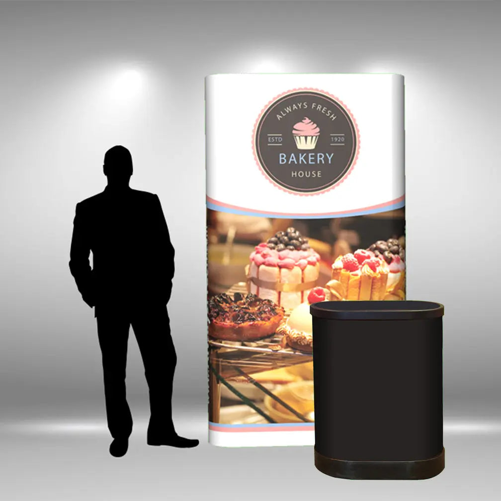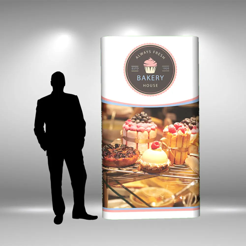 Pop-up towers are appealing to customers who desire to consume limited floor space but still present a bold look. Towers are constructed with the same high-quality hardware and graphic panels as the other members of this family. Panels can be backlit to create a free-standing lightbox. A very popular option is to combine two towers, one on each side, with a 10’ display. This will form a 20’ display for the larger shows; while also providing the option to separate the displays and handle multiple shows simultaneously.