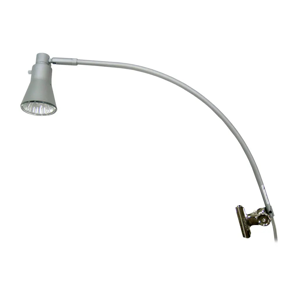 Metallic silver colored, this clamp-on light matches our retractable banners. To install, simply clamp it onto the retractable banner pole. The clamp-on light uses a 50W bulb.