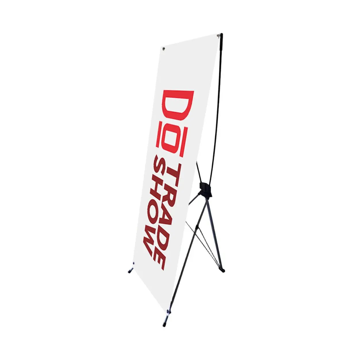 As the name suggests, this stand is formed with a large X frame supporting the graphic panel. It is lightweight (about 6.5 lbs). Set up is relatively easy. The graphic size is 24"W X 63"H. The package includes hardware, a custom graphic panel, and a carrying case.