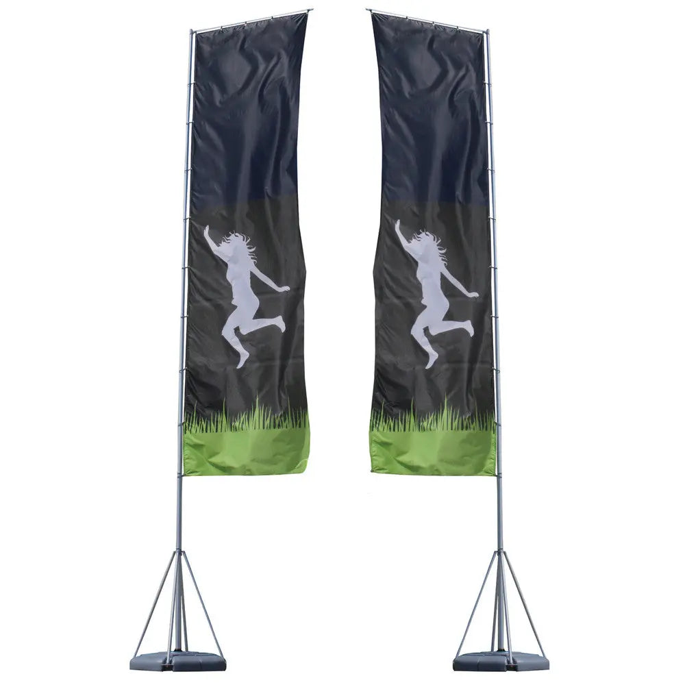 The VAST Flagpole banner stand comes with a custom print, stand and water base. The VAST flagpole is ideal for outdoor events, conference, sport events, etc. The banner design is customized to your graphic artwork, and is printed on a polyester-blend mesh fabric material by the process of dye sublimation. The telescopic aluminum flagpole fits into a plastic base that can be filled with water for stability. The flag is grommeted across the top and down 1 side and attaches to the flagpole with the supplied rings. Standard Turnaround Time is 7 Business Days for all variants.