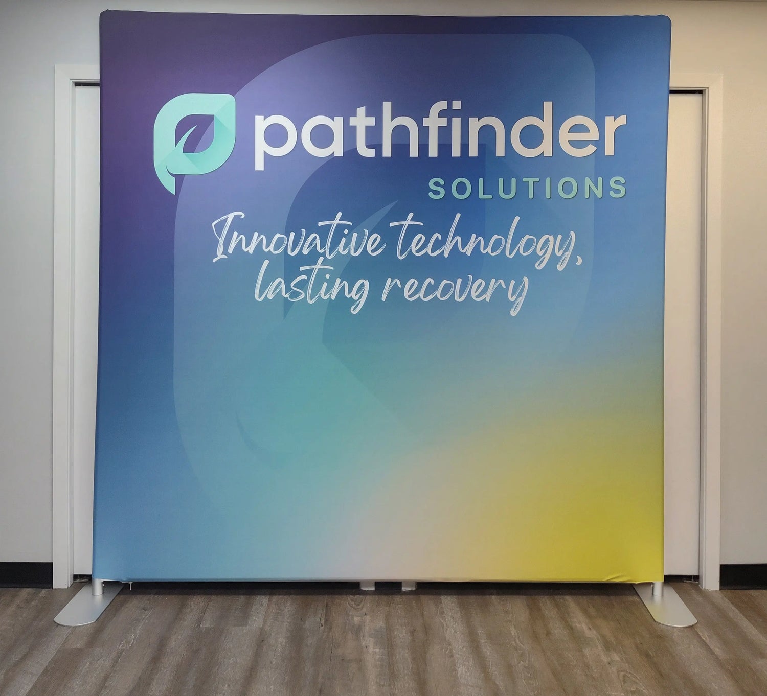 Our Sleek and "EZ," 8ft tension fabric systems, are a great alternative to standard backwall displays. Quickly assembled in just 5 minutes, slide the tubes together to make the frame and lock in place with a push button snap. Then, simply pull the pillowcase-like graphic over the frame and zip it shut. The zipper, hidden from view, tightens the stretch fabric, beautifully displaying your image. Disassembled, this lightweight frame and graphic fit inside its included Medium Hard Case.