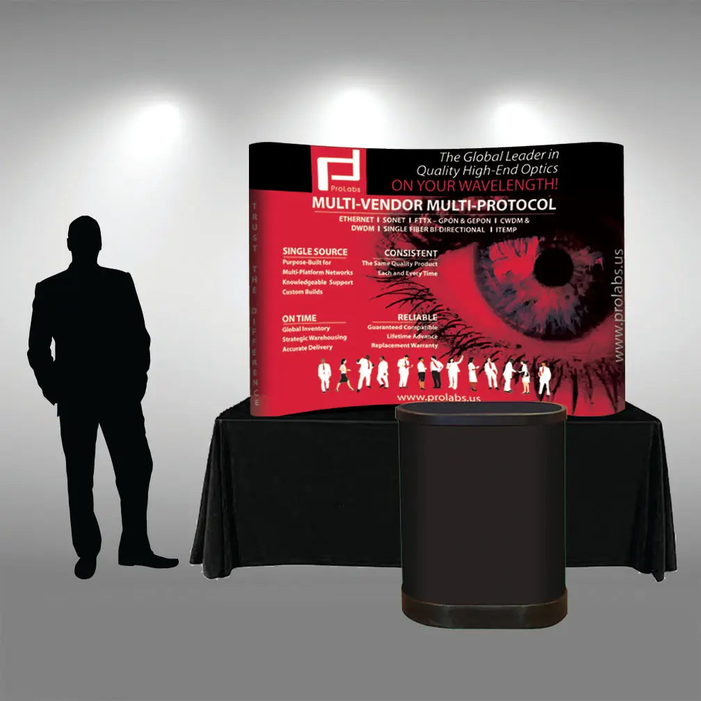 6’ tabletop pop-up displays are great for regional events where exhibition space and budgets are limited. It is perfect for a 6’ table. This pop-up display package includes hardware, custom graphic panels, and a carrying case of your choice, suitable for checking as luggage on the plane or shipping.