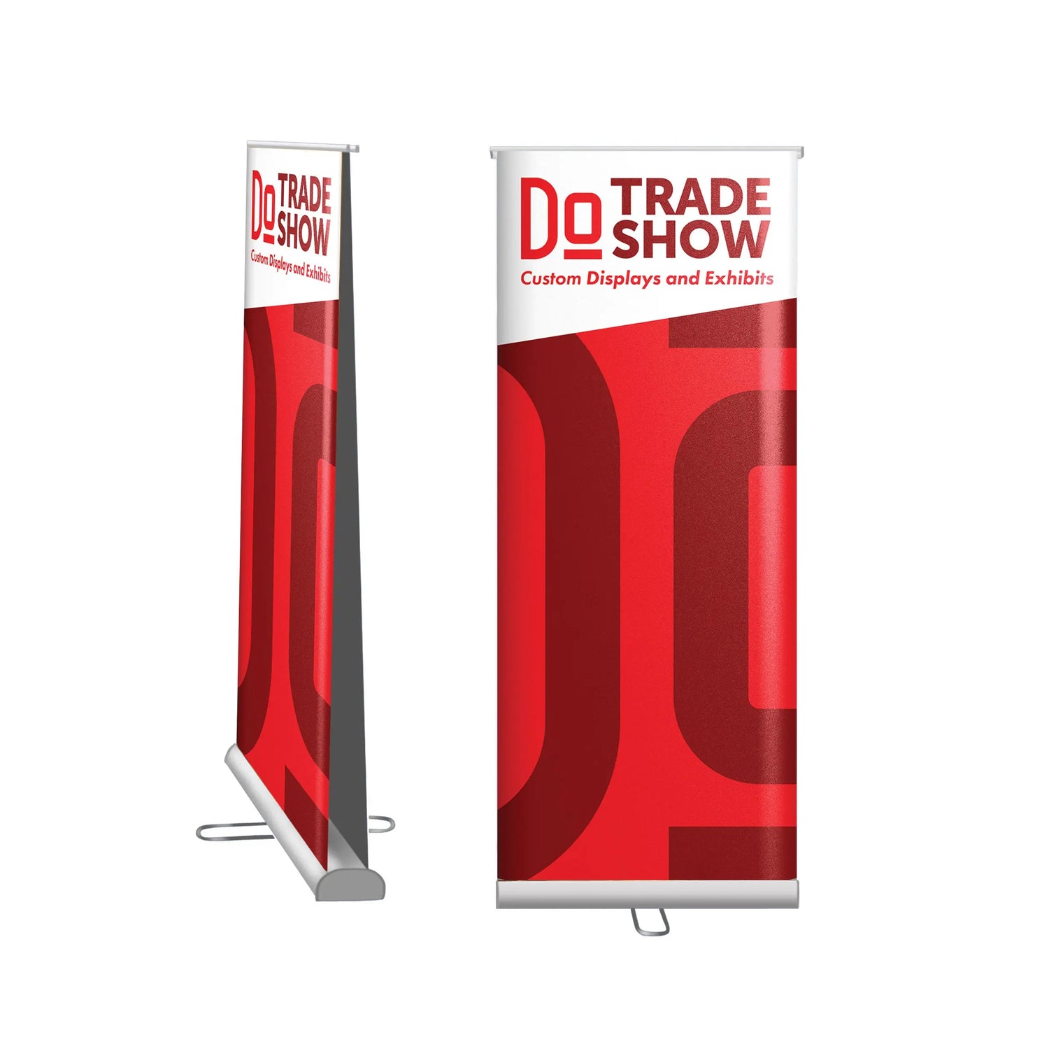 The Doublestep banner stand is a great way to market your company and showcase your products. This double-sided retractable banner stand comes in a width of 33.5" 80” tall overall and displays two banners back to back. It is the perfect blend of design, appeal, durability, and value. It easily portable in its foam-padded carry bag (included).